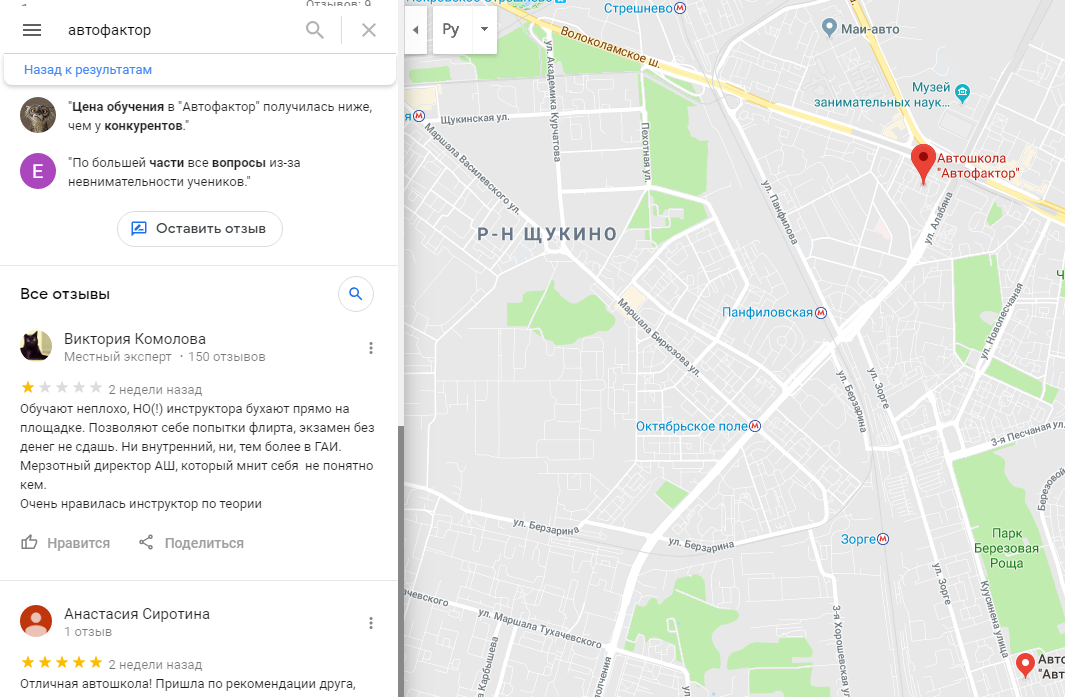 Местоположение пользователя: Россия, Москва Учился в автофакторе в 2015 г. Уже не помню имя преподавателя по теории, но занятия были реально интересные и полезные. А вот с инструктором не повезло, попался Максим. Хамоватый неприятный человек, на площадке обычно оставлял катать одного, а сам шел курить с товарищами. Ну так, азам у него набрался, но в остальном ничего хорошего от него не было. Откатал с ним около 10 занятий, потом был длительный перерыв. Затем взял нормального инструктора и обучение закончил с ним.