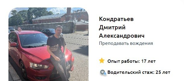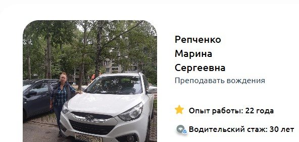 Вождение с моим инструктором Борисом Павловичем дало мне массу!!!новых открытий о автомобиле и его управлении. И катались мы занятия, и на площадке и в городе ровно до тех пор, пока у меня не стало получатся, по моим подсчетам это было больше, чем 28 занятий. И на всех оживлённых перекрестках не по одному разу побывали. И чувствовала я себя всегда уверенно, и если мои недочёты в другой школе игнорировались, то здесь мы отрабатывали всё до полного понимания, пока не получится, хоть по 10 раз! Здесь мне инструктор постоянно повторял, что он работает на результат, и от меня требуется только желание и старание. До конца не верила, что так вообще может быть, полностью две противоположности(автошколы).