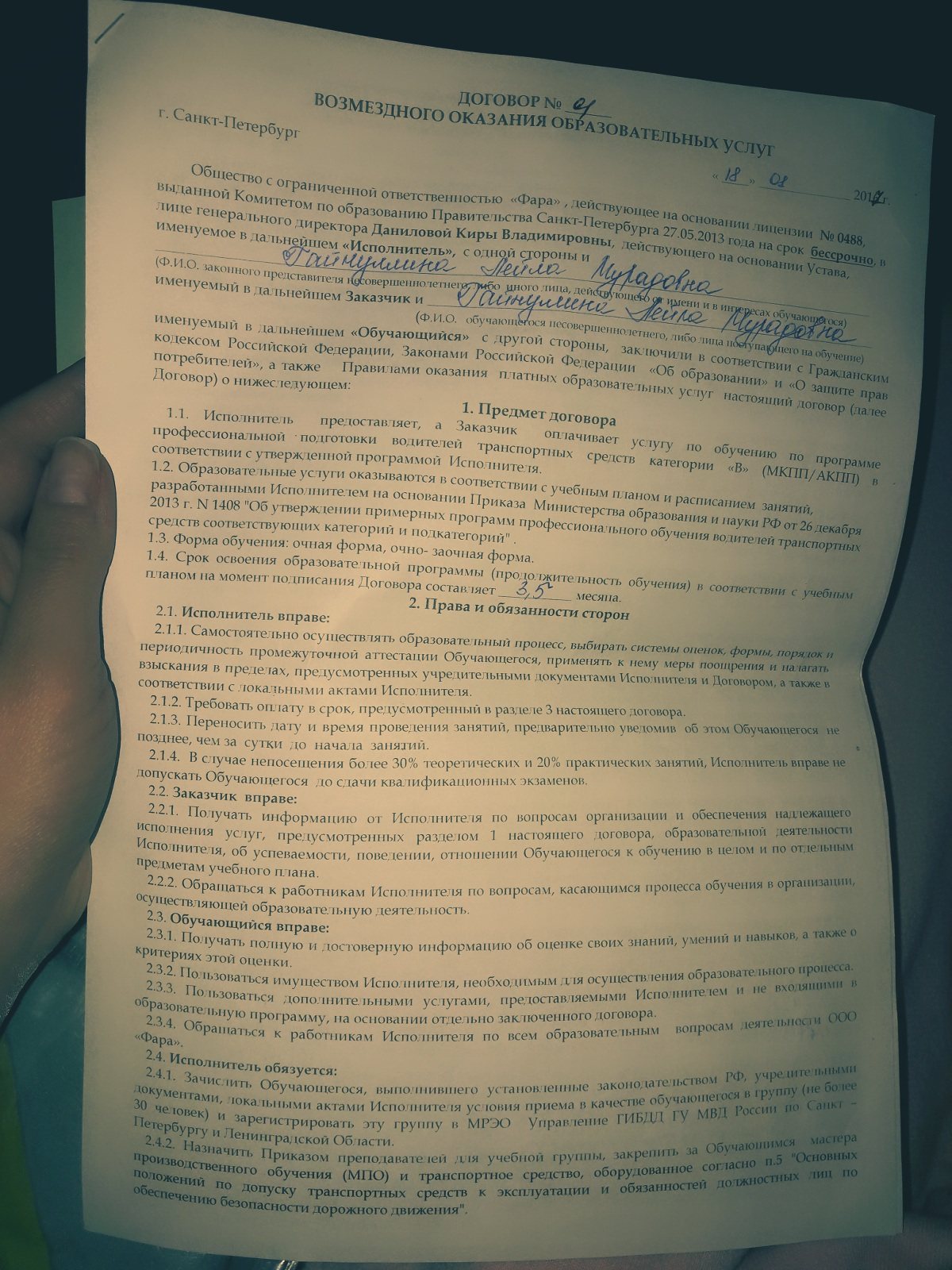 Закончила автошколу "Фара" (территориально: ст.м. Сенная площадь) . Училась у автоинструктора Дмитрия Тишинина. Больше всего понравилось его позитивное отношение к моиму тупизму за рулём