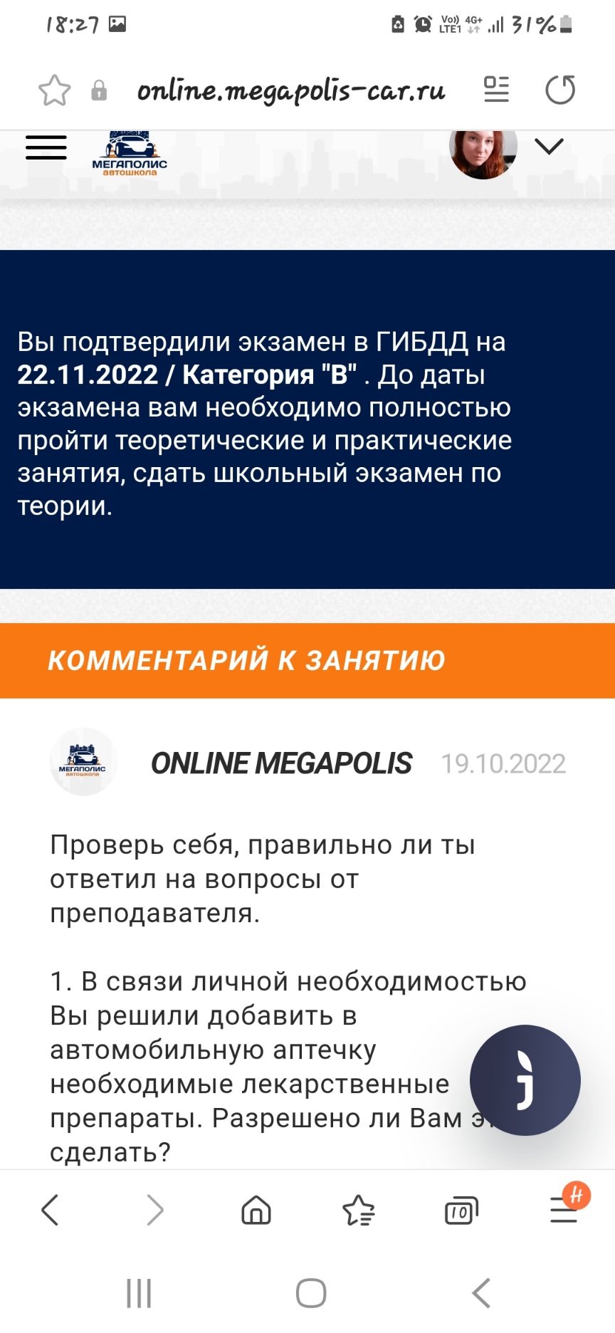 Всем добрый день! Занимаюсь сейчас в автошколе МЕГАПОЛИС. Когда пошла, переживала за то как будут проходить занятия и смогу ли я совмещать с работой, ребёнком и домашними заботами. Обучение очень удобное, в онлайн школе я могу заниматься в любое время, по дороге на работу, во время обеда, вечером перед сном.