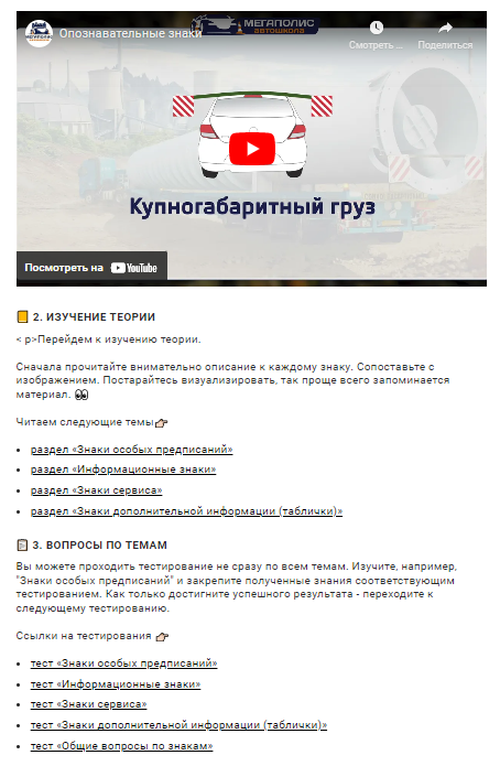 1) 2 раза в неделю открываются занятия на сайте автошколы, которые можно проходить в любое время. Туда входят: просмотр одного или нескольких видео с теорией, чтение текста ПДД, тест с вопросами из билетов, которые будут на экзамене, 3-4 вопроса с развернутым ответом, где нужно объяснять своими словами; возможность написать вопросы, которые появились в процессе изучения материала. Всё это вместе занимает у меня от 1,5 до 3 часов, но это потому что я читаю очень внимательно и сразу стараюсь запоминать.
