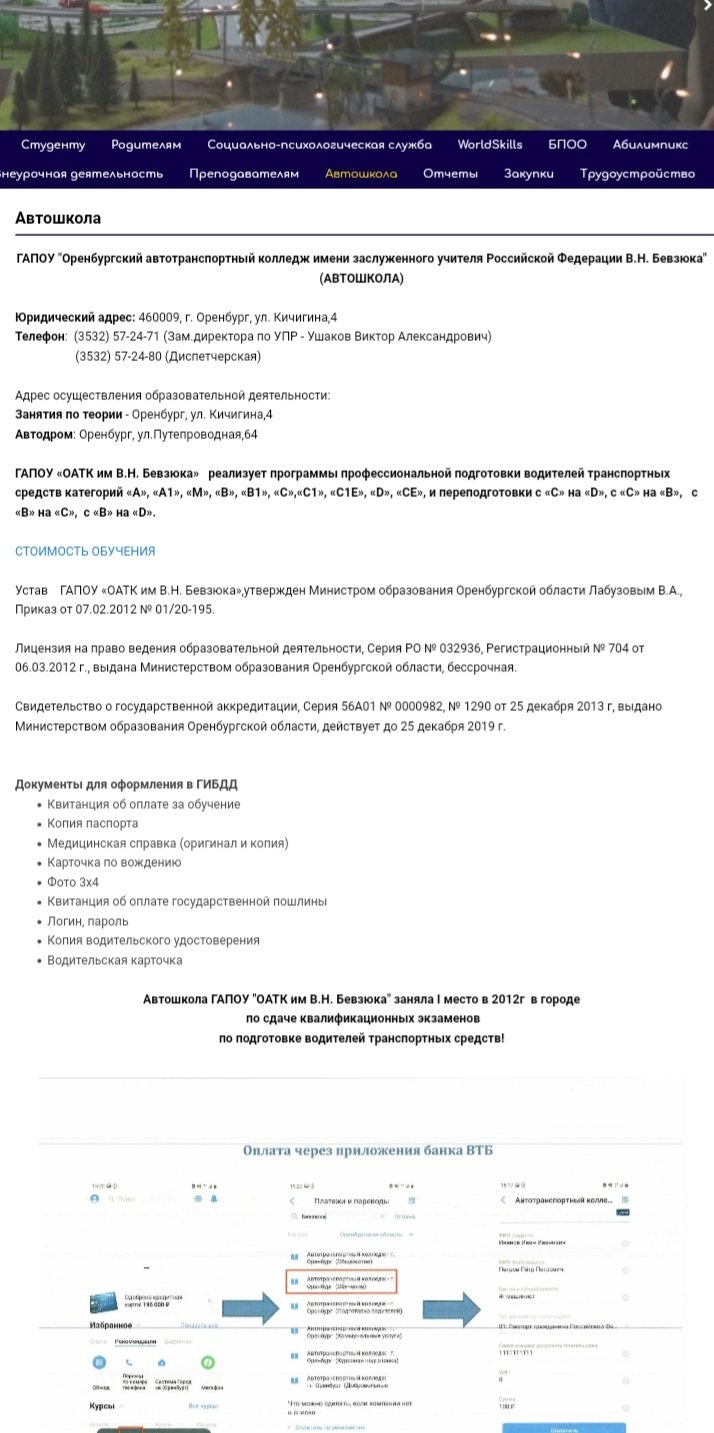"Оренбургский автотранспортный колледж имени заслуженного учителя Российской Федерации В.Н. Бевзюка"