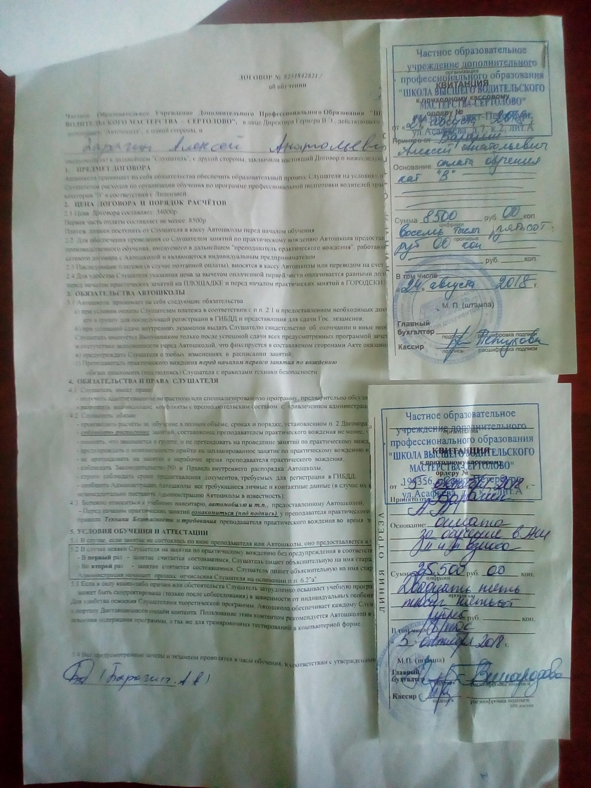В заключении-Отличная автошкола-я думаю лучшая в Питере!!!!! Действительно стоит потраченных денег!!! (Сейчас я очень рад,что не погнался за дешевыми подделками обещающими золотые горы за пол цены реальной-в ГАИ я видел к чему это приводит...... Огромное Спасибо за мои права!!!