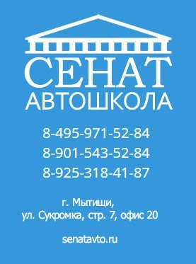 тел.: 8-966-054-93-33, email: avtoshkola.senat@yandex.ru, http://senatavto.ru/
