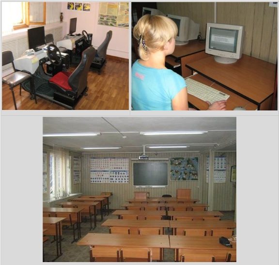 - автотренажеры в количестве 2 шт для прохождения обучения первоначальным навыкам управления автомобилем;