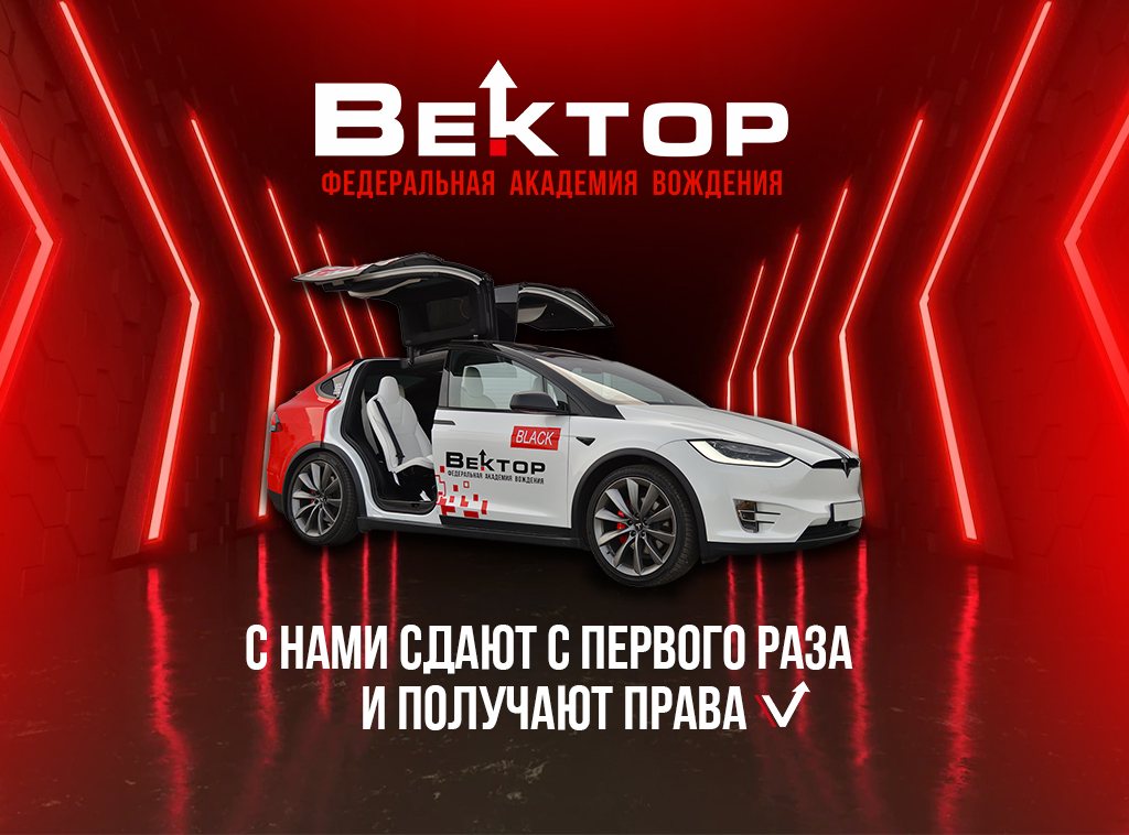 Федеральная академия вождения «Вектор» - это качественное образование с применением инновационных технологий и высоким уровнем сервиса. Это единственная автошкола в России, которая обучает даже на электромобиле Tesla. По статистике 80% процентов наших курсантов сдают с первого раза!