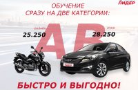 Получить удостоверение на право управления мотоциклом и автомобилем быстро и выгодно? Легко с автошколой "Лидер"!