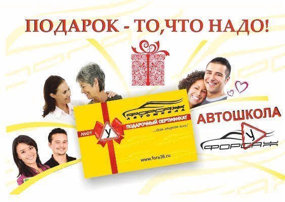 Подарочный сертификат в автошколу Форсаж Воронеж