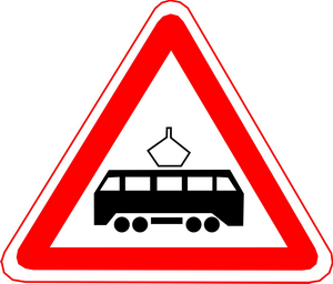 Через 50-100 метров проезжую часть пересекают трамвайные пути.