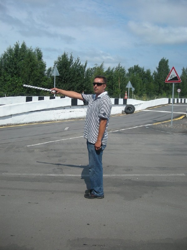 Почему я об этом так подробно и серьезно? Да это мой "больной" вопрос! Надеюсь, в следующий раз справлюсь с этим. На площадке также есть импровизированный железнодорожный переезд, несколько пешеходных переходов, двух и трех полосные дороги, есть экзаменационная змейка, отдельная площадка, где можно учиться делать развороты налево и направо. Размеры автодрома позволяют по прямой ездить на разных скоростях, естественно, не на 3-ей или 4-ой, отрабатывая при этом переключение коробки передач (выжимаем сцепление, переводим в другое положение коробку передач, сцепление отпускаем, прибавляем газ).