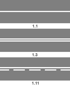 Разметка 1.11– пунктирная и сплошная линия идут параллельно между разнонаправленными полосами. Когда слева от Вас находится пунктирная линия, можно перестраиваться, обгонять и совершать прочие маневры, если же слева сплошная, то пересекать ее нельзя, за исключением завершения обгона или объезда.