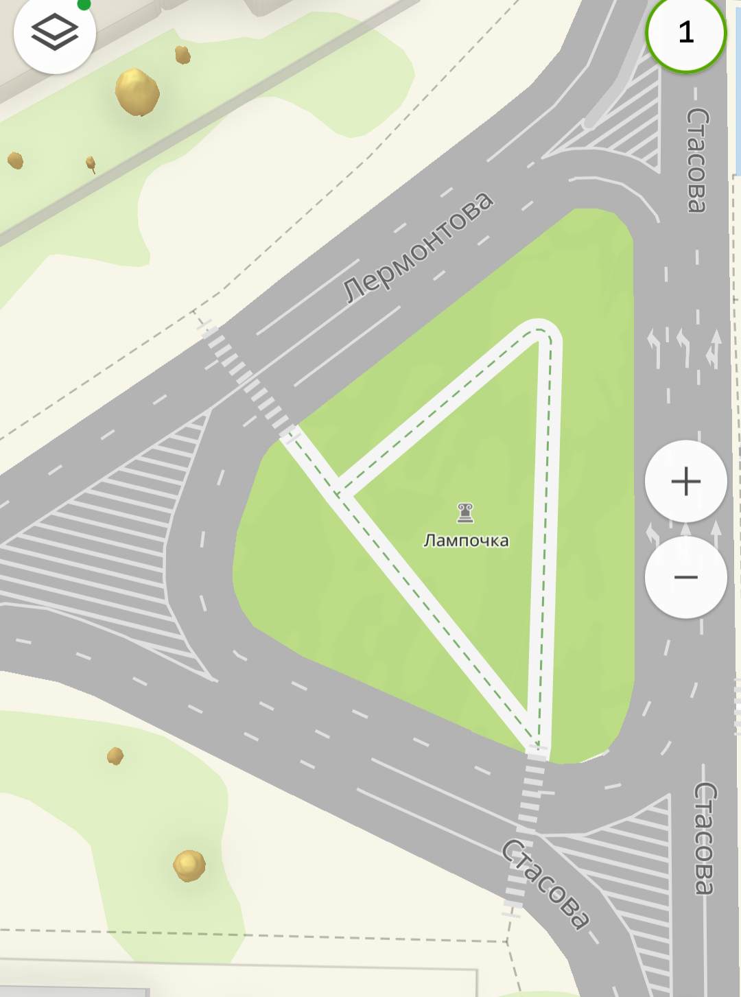 здравствуйте, расставьте направления движения на данном перекрестке по полосам движения, т.е. как правильно выезжать с этого перекреска по какой траектории с Лермонтова на Стасова? спасибо