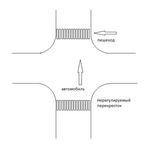 Хочу уточнить свой предыдущий вопрос: в рамках нерегулируемого перекрестка имеется пешеходный переход; должен ли водитель при пересечении перекреска в прямом направлении уступить дорогу пешеходу? Ведь как трактуют правила- при проезде перекрестка при повороте направо или налево водитель обязан уступить дорогу пешеходам, переходящим проезжую часть дороги, на которую он поворачивает.