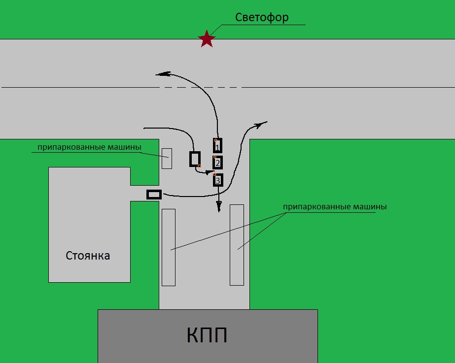 Дорога от предприятия, шириной достаточной для того, чтобы машины встали в 4 ряда. До перекрестка метров 60. Стою на выезд , перед перекрестком 3-ей машиной, включила левый поворотник, жду разрешающего сигнала. На встречную полосу повернула машина и просит (сигналом), чтобы я дала ему развернуться перед собой . Я посмотрела в зеркало заднего вида, включила заднюю скорость( у меня на машине установлены парктроники) и стала сдавать назад. В это время со стоянки, находящейся от меня с левой стороны, начинает двигаться машина, пересекая траекторию моего движения. Как потом сказала дама за рулем: "Она хотела меня объехать сзади и встать в крайний правый ряд, чтобы потом совершить поворот направо на разрешающий сигнал светофора. Произошло столкновение, я задним бампероем своей машины въехала ей в дверь, а может она подставила свою машину под траекторию движения моей машины... Кто виноват???