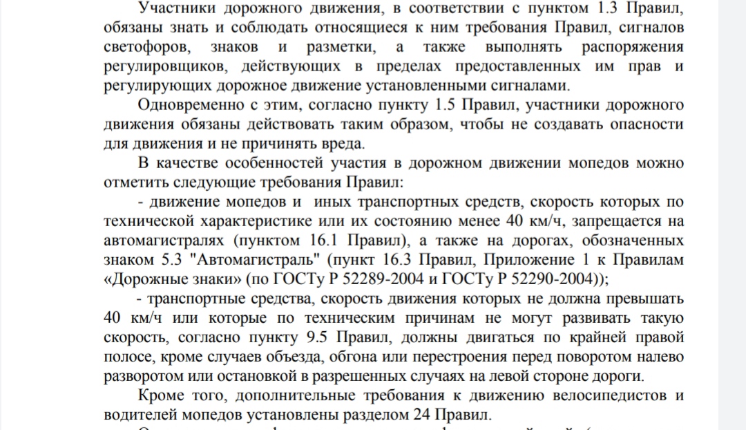 Здравствуйте, поясните один вопрос, может ли мой мопед ехать по автомагистралям, если его конструктивная скорость больше сорока км/ч, и что делать если движение по автомагистралям - вынужденное, то есть например есть микрорайоны за мкадом, которые связаны с городом, исключительно автомагистралями, и что делать в таких случаях, заодно прикрепляю официальный ответ мвд