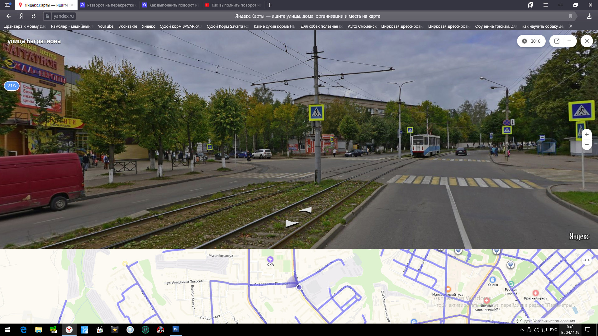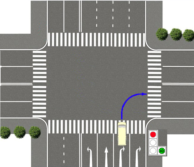 Здравствуйте! Я ещё только учусь в автошколе. Прикрепляю фотографию перекрёстка. Я еду по главной дороге с односторонним движением. Инструктор даёт мне задание: Выполни на этом перекрёстке поворот налево. Подскажите, пожалуйста, где я должен остановиться, включив левый поворотник, чтобы пропустить попутные трамваи и встречный транспорт : на проезжей части в крайней левой полосе, либо заехать в разрыв разделительной линии и стать перпендикулярно трамвайным путям. Просто с одним инструктором мы пропускали встречный транспорт стоя в разрыве разделительной полосы, перпендикулярно трамвайным путям, а с другим инструктором мы пропускали встречный транспорт и попутный трамвай стоя на крайней левой полосе. Так какой из инструкторов учит меня правильно осуществлять поворот налево на данном перекрёстке?