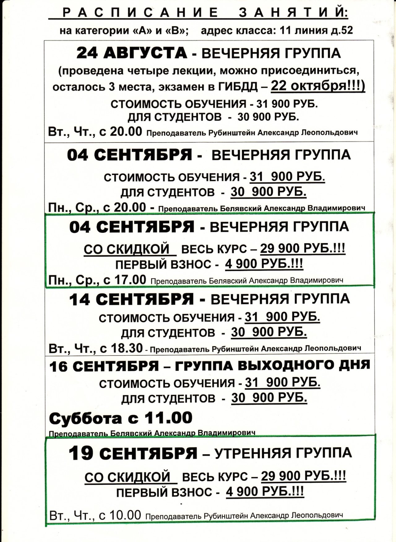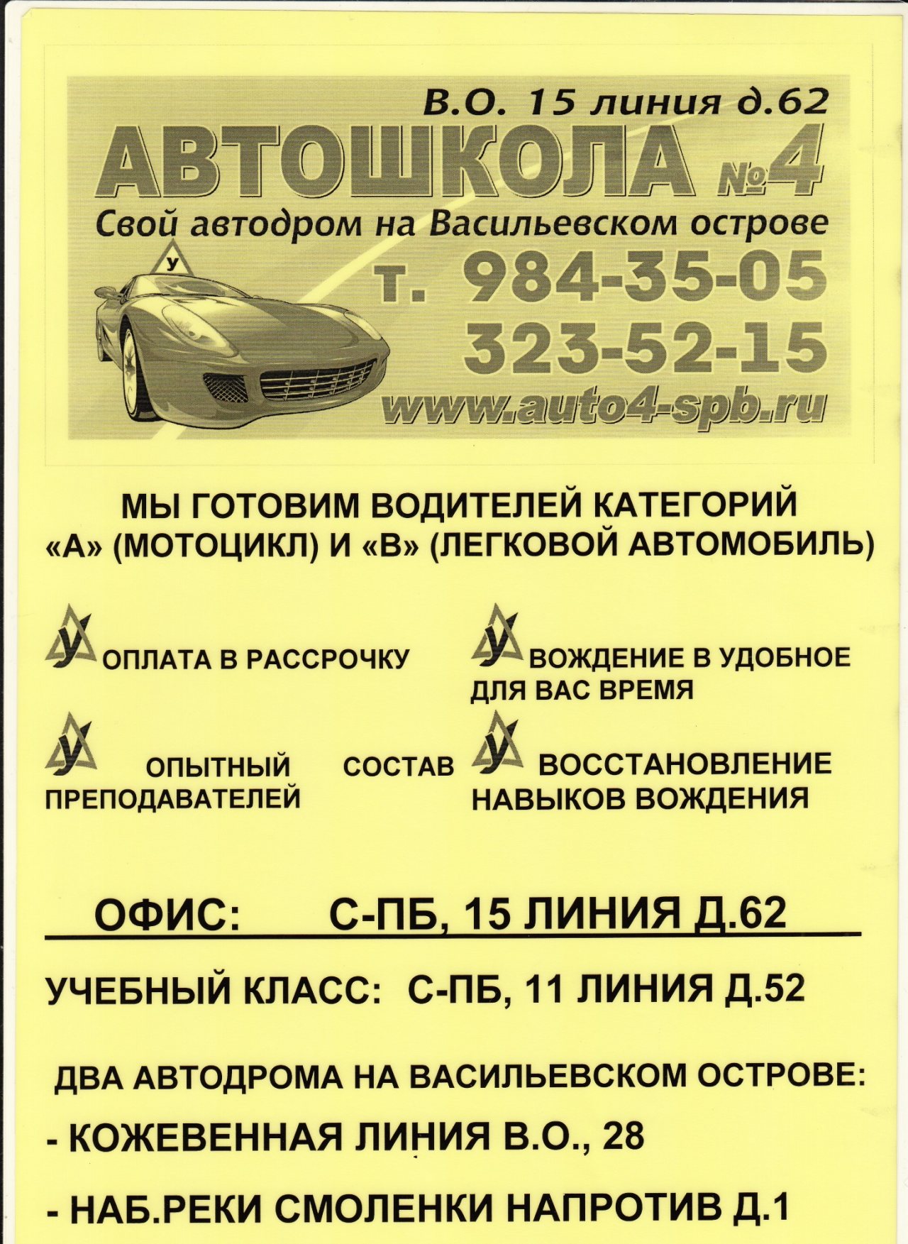 АВТОШКОЛА № 4 НА ВАСИЛЬЕВСКОМ ОСТРОВЕ ПРИГЛАШАЕТ НА ОБУЧЕНИЕ!!!