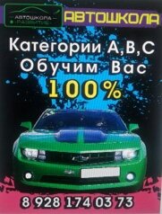 Автошкола объявляет набор в майскую группу. Категории А.В.С.Стоимость полного курса обучения по категории В до конца мая-14000! Центр города. Пушкинская 85. Тел. 89281740373