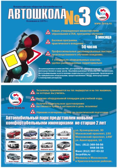 Автошкола №3 ВОА в Санкт-Петербурге СПб. Кузнецовская 30
