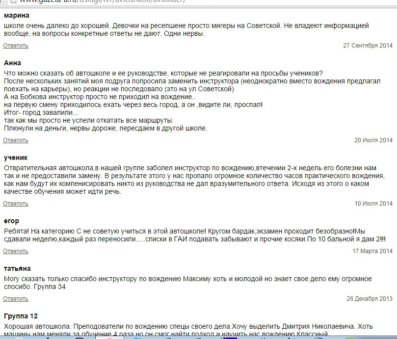Прочитав многие отзывы на данном сайте в самом начале, перед учёбой была немного расстроена за выпускников данной школы, т.к. многие пишут, что то не так и это не так - ну ребят, Вы когда идёте учиться на права любой категории в первую очередь Вы должны же понимать, что Вы это делаете только для СЕБЯ!!! и то что кто то из инструкторов Вам сказал не так, как Вы привыкли общаться дома - это совсем не значит что он (инструктор) плохой или настроен против ВАС! Это же не начальная школа где за Вами ходят нянечки и упрашивают Вас вести себя хорошо! Тут речь идёт не только о Вашей жизни на дороге, но и о тех кто будет вокруг Вас так же на ТС!!! И если инструктора будут подстраиваться под настроение каждого, будь то девочка или мальчик, это уж точно будет не обучение вождению. Вы это делаете в первую очередь только для СЕБЯ! У Вас инструктор один, а у инструкторов Вас много!