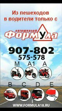 Автошкола "ФОРМУЛА" на рынке уже более 12 лет. Профессиональное обучение на все категории ТС "М", "А1", "А", "В", "ВС", "СЕ", "ВЕ", с "В" на "С", с "С" на "Д", с "В" на "Д" .