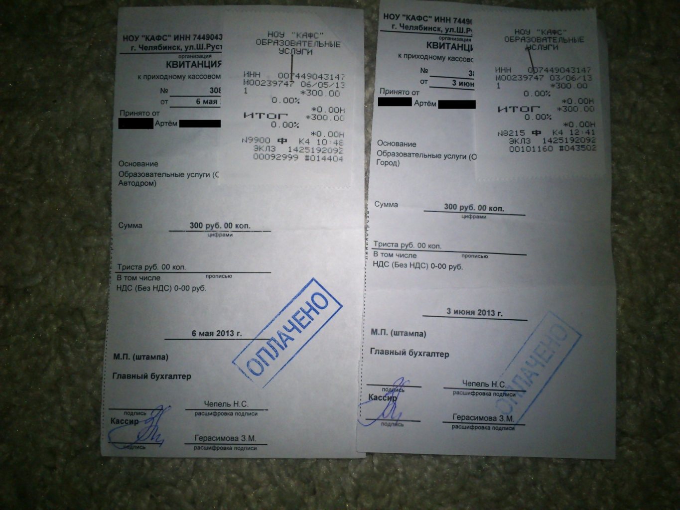 прилагаю достоверную инфу о том что я не работник конторы кафс`а, пару фоток моих чеков об оплате.