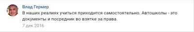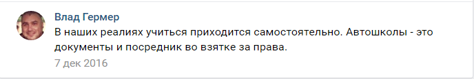 Только она вырвана из контекста и из диалога в группе отзывов про автошколы ВКонтакте.