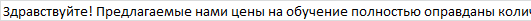 Местоположение пользователя: Россия, Тула Денис, здравствуйте! Наша ценовая политика доступна для всех категорий учащихся. Стоимость обучения у нас всегда остается фиксированной на протяжении всего периода обучения. Кроме того, мы предоставляем скидки отдельным категориям лиц, например, студентам, а также возможность оплаты обучения в рассрочку.
