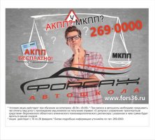 *Условия акции действуют при обучении на категорию В-АКПП «В-54» «В-68». При записи в автошколу необходимо предъявить чек оплаты мед.услуг ( прохождение медкомиссии на получение справки «О допуске к управлению транспортным средством» Воронежского областного клинического психоневрологического диспансера ) указанная в чеке сумма будет являться вашей скидкой.