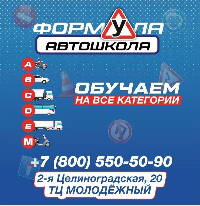 тел.: 8(861)290-95-95, email: avto-formula23@yandex.ru, http://www.formula123.ru, https://vk.com/formula_krasnodar, https://ok.ru/formula123, https://www.facebook.com/formulakrd, https://www.instagram.com/formula_krasnodar/, WhatsApp: +79280367070