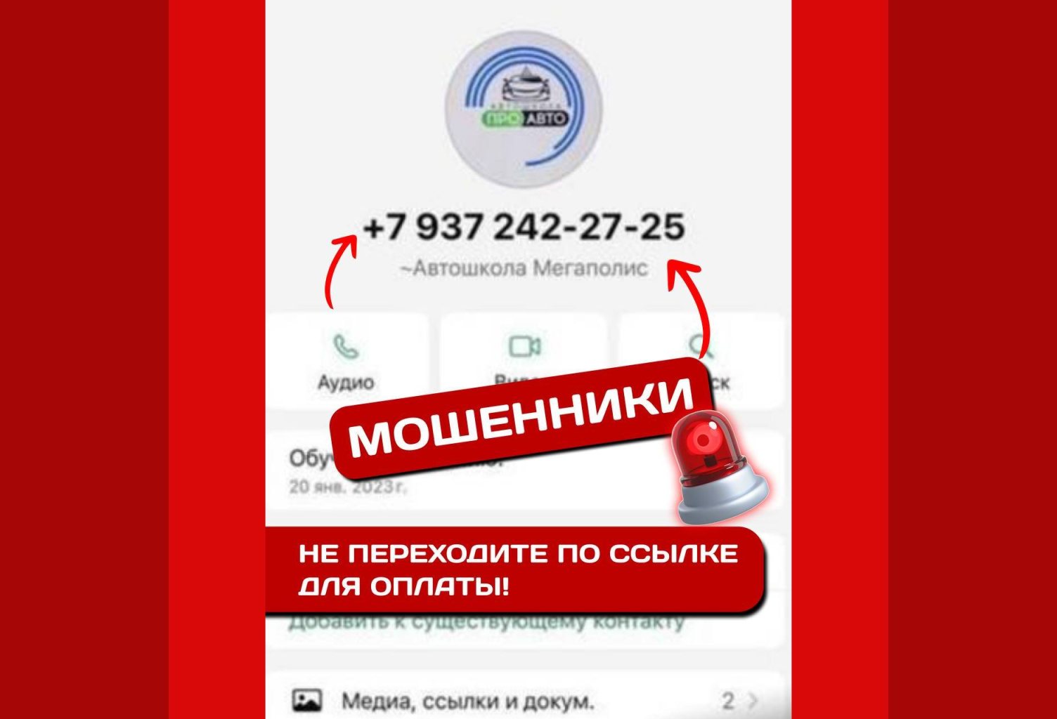 ⚠️ Они выдают себя за нашу автошколу «Мегаполис» и обманывают учеников, присылая поддельные ссылки на оплату. Это мошенничество может привести к серьезным финансовым потерям и разочарованию!