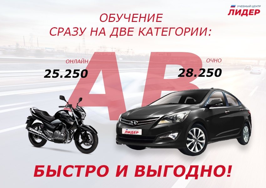 Получить удостоверение на право управления мотоциклом и автомобилем быстро и выгодно? Легко с автошколой "Лидер"!