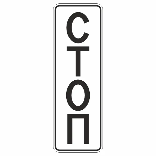 Новый вертикальный знак применяется в местах, где невозможно нанести горизонтальную разметку. Он указывает точку обязательной остановки перед перекрёстком или светофором.