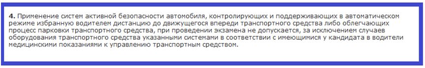 Ранее нормативная документация содержала противоречивые требования об использовании на экзамене автомобилей с парктронниками. С одной стороны, правила это запрещали, а с другой – ученики автошкол с одним видящим глазом обязывались сдавать экзамены на авто с парктронниками, и их права содержали соответствующую отметку – APS. Теперь данное противоречие устранено и прописано в правилах: