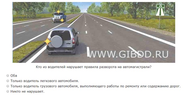 Пунктом 16.1 Правил запрещено разворачиваться в технологических разрывах разделительной полосы на автомагистрали. Однако для машин дорожно-эксплуатационных служб с включенными проблесковыми маячками оранжевого или желтого света, выполняющих ремонтные или уборочные работы, оговорено исключение п. 3.5 ПДД. Таким образом, грузовик не нарушает Правил.