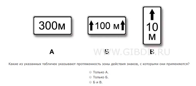 Для ответа на данный вопрос вам понадобятся знания дорожных знаков. Протяженность зоны действия указана на табличках Б – 8.2.1 «Зона действия» и В – 8.2.2 «Зона действия». А вот табличка А – 8.1.1, говорит о точном расстоянии до объекта, опасного участка либо места введения какого-либо ограничения, находящегося впереди в данном направлении движения.