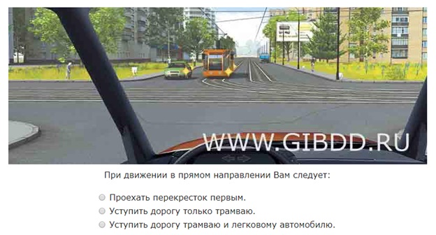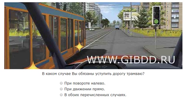 Сигнал светофора разрешает движение и вам, и трамваю – пункт 6.2. Но на трамвае включен указатель поворота, следовательно, на перекрестке ваши пути движения пересекутся. Пункт 13.6 Правил гласит, что у трамваев преимущество перед безрельсовым транспортом, значит, вы обязаны его пропустить.