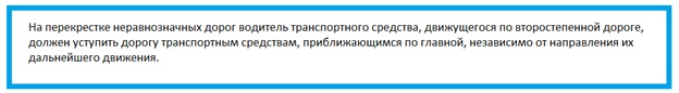 И так, мы движемся по главной дороге, о чем нам говорит знак 2.1, и перед нами перекресток неравнозначных дорог.