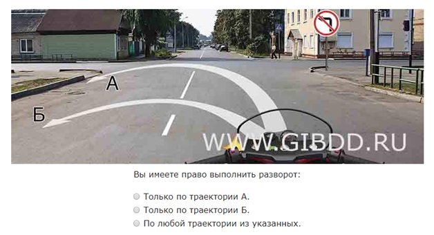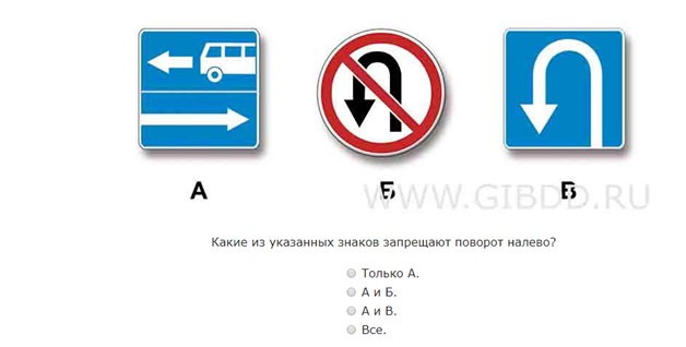 Картинка Б – знак 3.19 «Разворот запрещен», говорит о запрете на совершение разворота, но повернуть налево вам не запрещается.