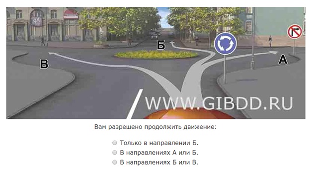 Таким образом, вы можете двигаться по траектории Б, вокруг клумбы против часовой стрелки, а вот по траектории В движение запрещено. По траектории А вы также не можете двигаться, поскольку это запрещено знаком «Поворот направо запрещен».