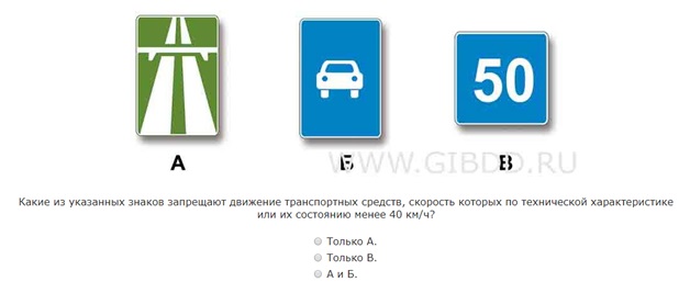 Картинка А – «Автомагистраль». Данным знаком обозначают дорогу, где запрещено двигаться пешеходам, велосипедам, мопедам, тракторам, самоходным машинам и иному транспорту, скорость которого по техническим характеристикам или состоянию не превышает 40 км/ч (п. 16.1). Аналогичные требования предъявляются к транспорту, движущемуся по дорогам, обозначенным знаком «Дорога для автомобилей» - картинка Б.