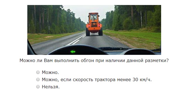 И так, на дорожное полотно нанесена разметка 1.11. Правила гласят, что водитель может пересечь данную линию со стороны прерывистой, а также сплошной, но только завершая объезд или обгон. Поэтому, вне зависимости от того, с какой скоростью двигается трактор, вы можете выполнить данный маневр.