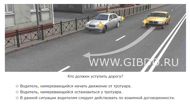 Ответ на данный вопрос регламентируется пунктом 8.1 ПДД, который обязывает водителей, начинающих движение от тротуара, убедиться в том, что они не создадут опасности и помех для движения другого транспорта. Это значит, что водитель должен пропустить авто, находящееся в движении.