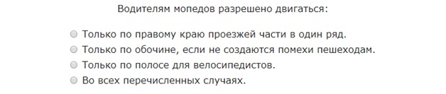 Конструктивные особенности мопедов позволяют им развивать скорость не более 50 км/ч, поэтому движение на мопеде разрешается по полосе для велосипедистов – 1.23.3, а если она отсутствует, они должны занимать правый край проезжей части или обочину, и двигаться в один ряд, не создавая помех пешеходам – п. 24.7 Правил.