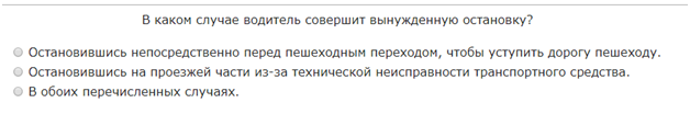 И так, возвращаемся к ответу на вопрос 1 билета 1 ПДД, который теперь очевиден. Первый вариант нам не подходит, поскольку пропуск пешехода является выполнением требований правил, и не относится к вынужденной остановке. Следовательно, и третий вариант также не годится. Ответ на вопрос 1 следующий: