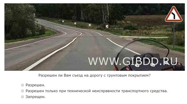 Так мы выяснили, что на картинке отсутствуют знаки или разметка, запрещающие вам съехать на грунтовую дорогу, поэтому вы смело можете это сделать. Следовательно, правильным будет ответ «Разрешен» - 1.