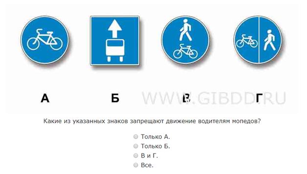 Все представленные знаки не предусматривают движения мопедов, а это значит, что правильный ответ 4 – «Все».