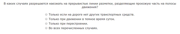 На основании пункта 9.7 ПДД, при разделении проезжей части на полосы линиями разметки, транспорт должен двигаться строго по обозначенным полосам. Наезд на прерывистые линии разметки разрешен только при перестроении. Следовательно, правильный ответ 3 – «Только при перестроении».