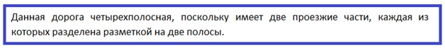 Правильный ответ – 2 «Данная дорога имеет 4 полосы для движения».