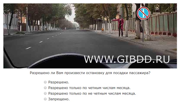 Первое, на что нам нужно обратить внимание на данной картинке – это дорожный знак 3.29 «Стоянка запрещена по нечетным числам месяца». Однако вам не требуется становиться на стоянку, чтобы посадить пассажира, а нужно лишь остановиться в данном месте, что не запрещается знаком, и вы можете сделать это когда угодно и в любой день месяца.